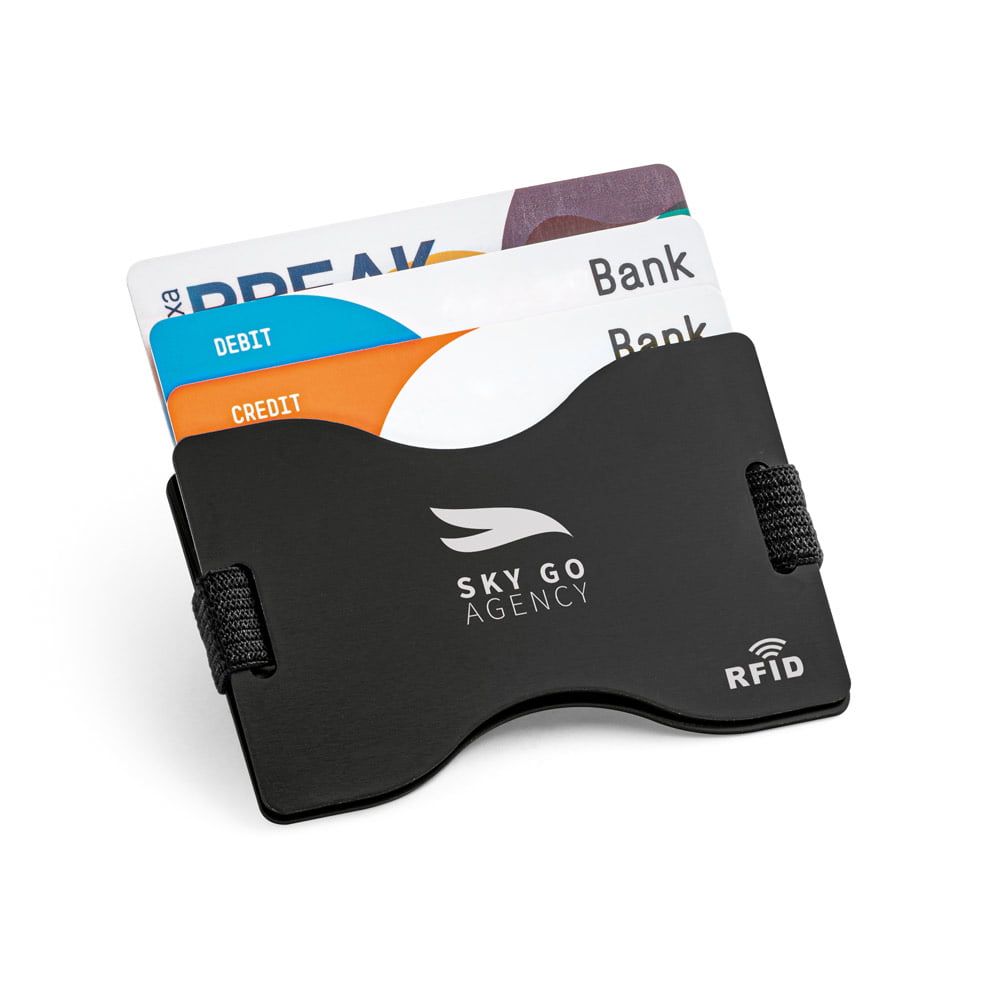 Porta cartões com bloqueio RFID e fita elástica em poliéster – MULLER