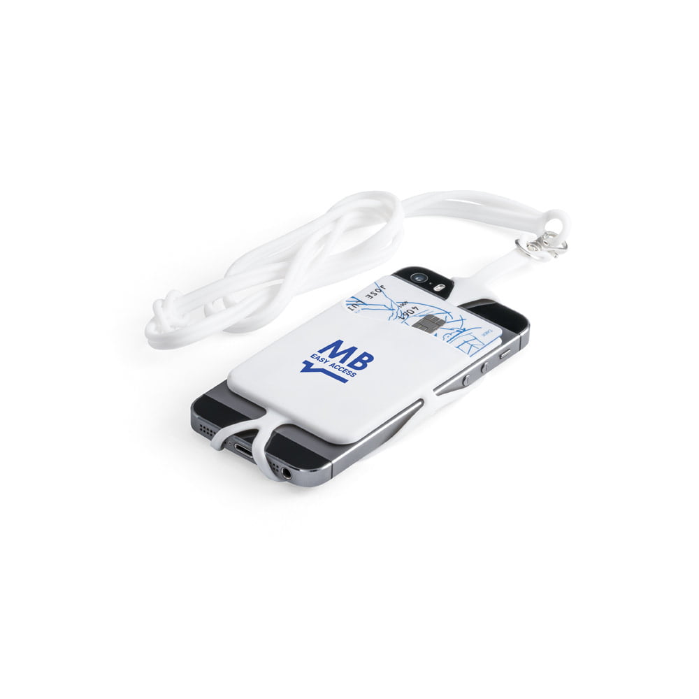 Porta cartões em silicone com cordão e suporte para celular. Porta-cartões: 57 x 86 x 4 mm | Lanyard: 420 mm