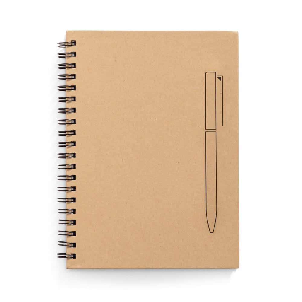 Caderno B6 espiral com capa dura em papel kraft e 70 folhas lisas em papel pedra de (120 g/m²). Imã na capa que funciona como um suporte de esferográfica (não inclusa). 130 x 180 mm