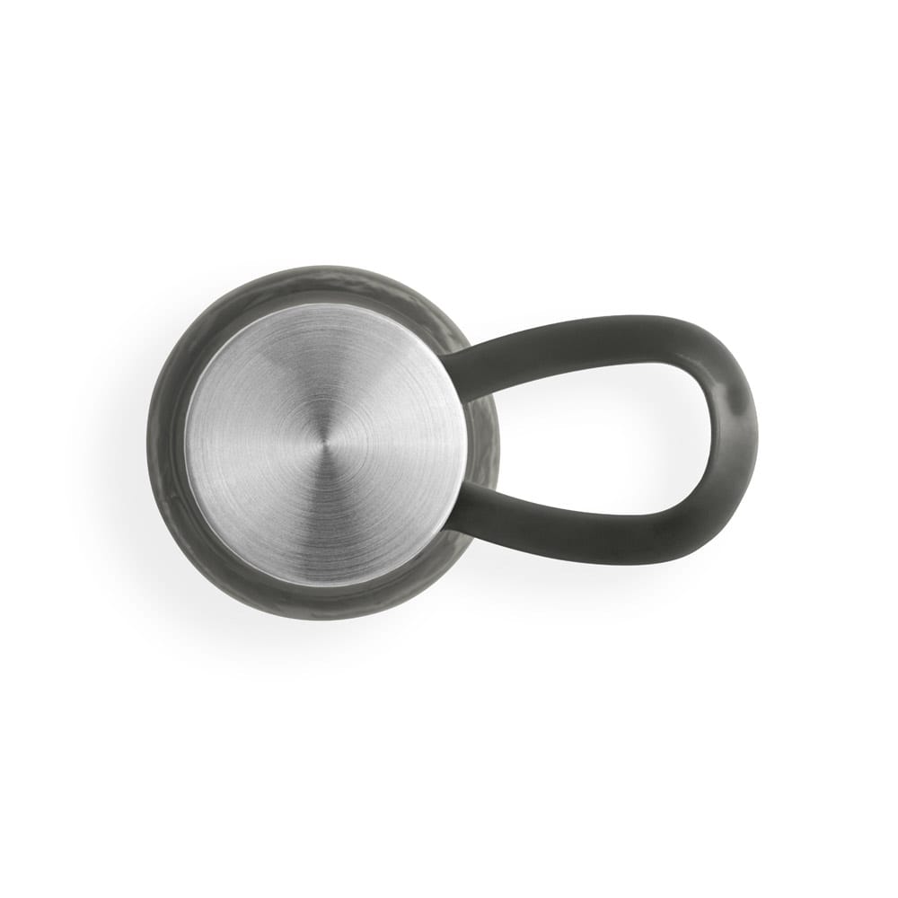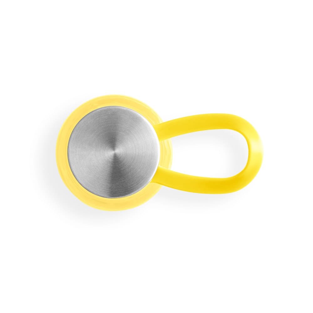 Squeeze em rPET 100% reciclado com alça de silicone para facilitar o transporte. Tampa em PP e aço inox com isolante em silicone. Capacidade até 590 mL. Caixa branca 94651 vendida opcionalmente. Certificação EU Food Grade. ø66 x 230 mm