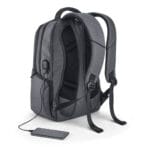 Mochila para notebook em Nylon 2Tone impermeável com dois compartimentos. Interior forrado e almofadado. O compartimento posterior tem bolso interior com zíper e divisória almofadada para notebook até 17''. O compartimento frontal tem diversos bolsos interiores. Mochila com 2 bolsos frontais e 2 bolsos laterais. Alças almofadadas. Parte posterior almofadada com sistema de apoio acolchoado para as costas e tira de transporte para trolley com bolso. Placa metálica removível com imã, para fácil gravação. Capacidade até 26 L. 310 x 470 x 200 mm | Placa: 50 x 20 mm