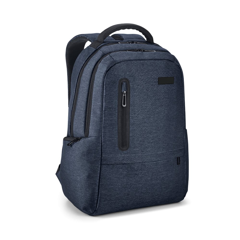 Mochila para notebook em Nylon 2Tone impermeável com dois compartimentos. Interior forrado e almofadado. O compartimento posterior tem bolso interior com zíper e divisória almofadada para notebook até 17''. O compartimento frontal tem diversos bolsos interiores. Mochila com 2 bolsos frontais e 2 bolsos laterais. Alças almofadadas. Parte posterior almofadada com sistema de apoio acolchoado para as costas e tira de transporte para trolley com bolso. Placa metálica removível com imã, para fácil gravação. Capacidade até 26 L. 310 x 470 x 200 mm | Placa: 50 x 20 mm