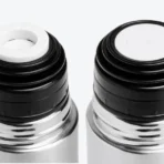 Confeccionado em aço inox escovado com tampa em polipropileno rosqueável, botão fast click para abrir (open) e fechar (close) localizada na parte superior e anel em silicone para vedação. Mantém por mais tempo a temperatura de bebidas quentes ou geladas.