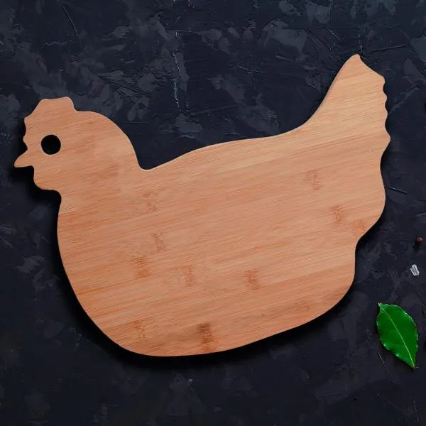 Tábua para cozinha em Bambu em formato de Galinha. Confeccionada com tripla camada invertida, para dar maior durabilidade e não deformar com o passar do tempo.