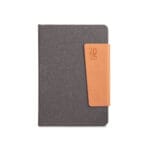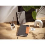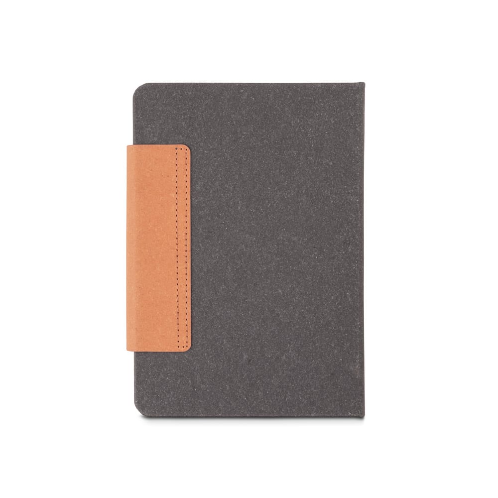 Agenda A5 em pele reciclada (58%) com fecho magnético. Está organizada num plano diário. Com suporte para esferográfica (inclusa) e marcador em fita. Fornecida com bolsa de non-woven. 148 x 210 mm | Bolsa: 205 x 250 mm