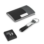 Kit de porta cartões e chaveiro em c. sintético e metal. Fornecido em caixa almofadada. Chaveiro: 15 x 92 x 8 mm | Porta cartões: 97 x 65 x 11 mm | Caixa: 154 x 143 x 34 mm