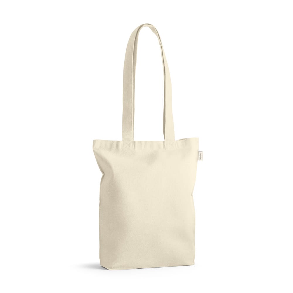 Sacola 100% algodão reciclado (140 g/m²) com alças de 75 cm. 380 x 420 x 100 mm