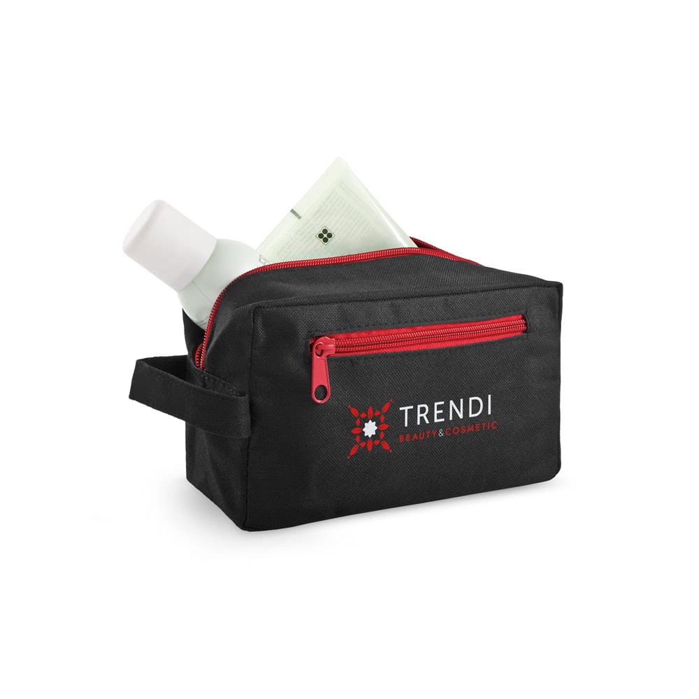 Bolsa de cosméticos em 600D com pega e bolso frontal. 200 x 115 x 85 mm